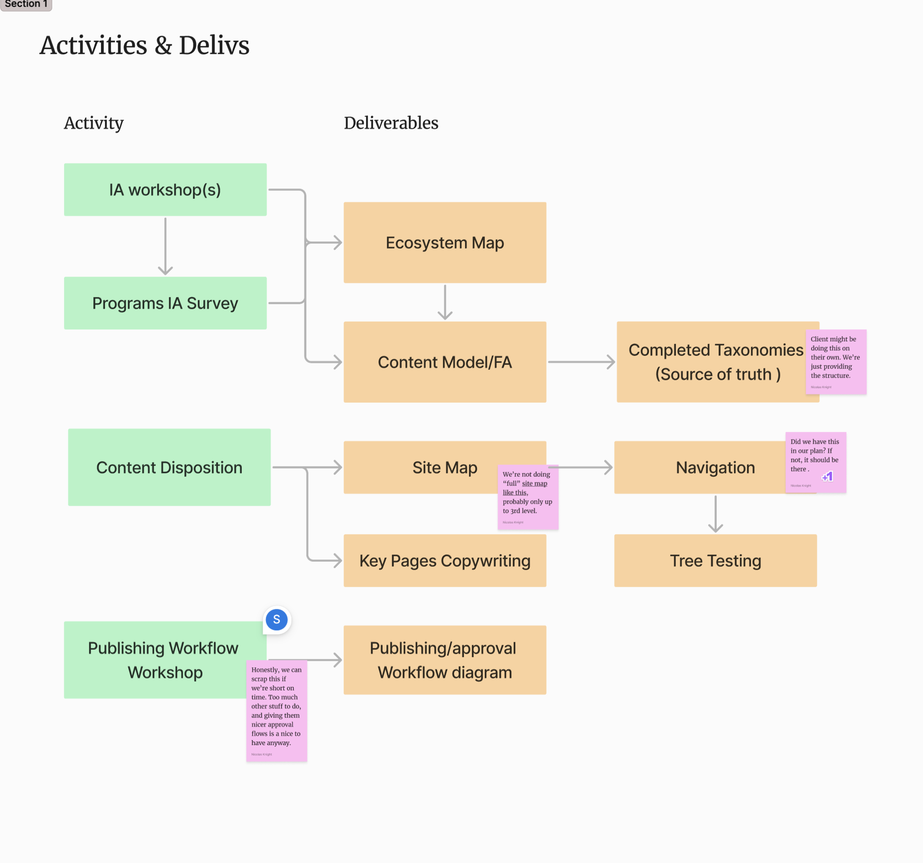 Government projects often come with a highly prescriptive SOW and a range of deliverables we’re mandated to complete, which can make it difficult to pivot when a better approach comes up. I’ve led collaborative planning sessions with the internal team to strategize critical pathing to achieve this goals.