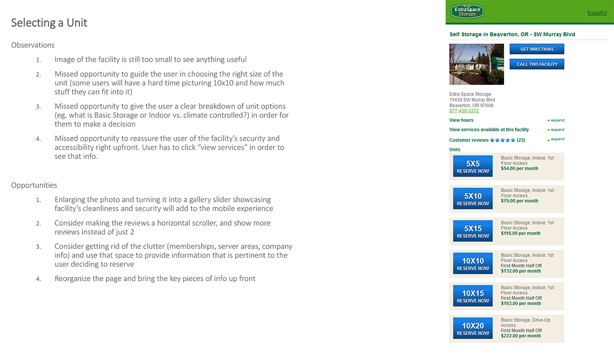 We set out to redesign the mobile experience of finding, evaluating, and reserving a storage unit, to help out ExtraSpace’s conversions. We managed to raise it by 23%, which was a big deal in a highly-competitive market.