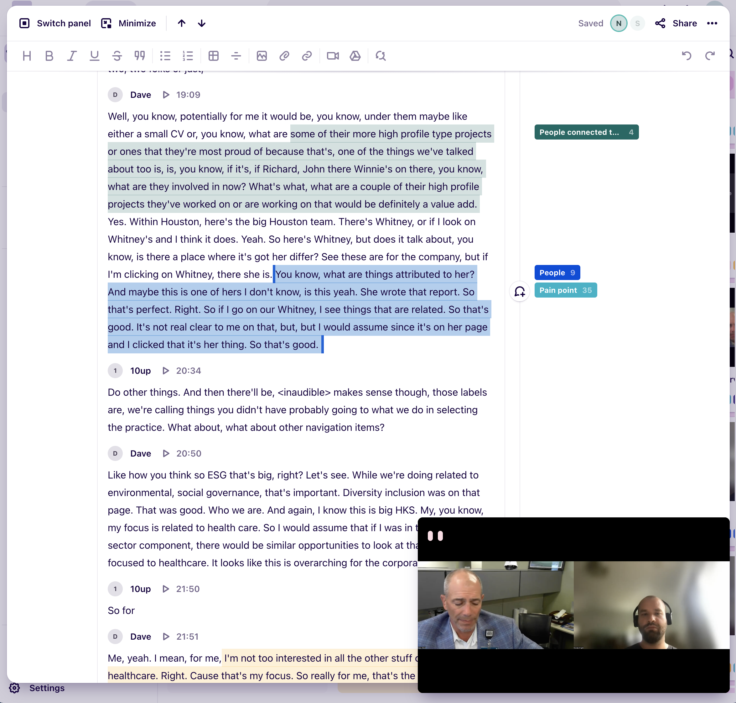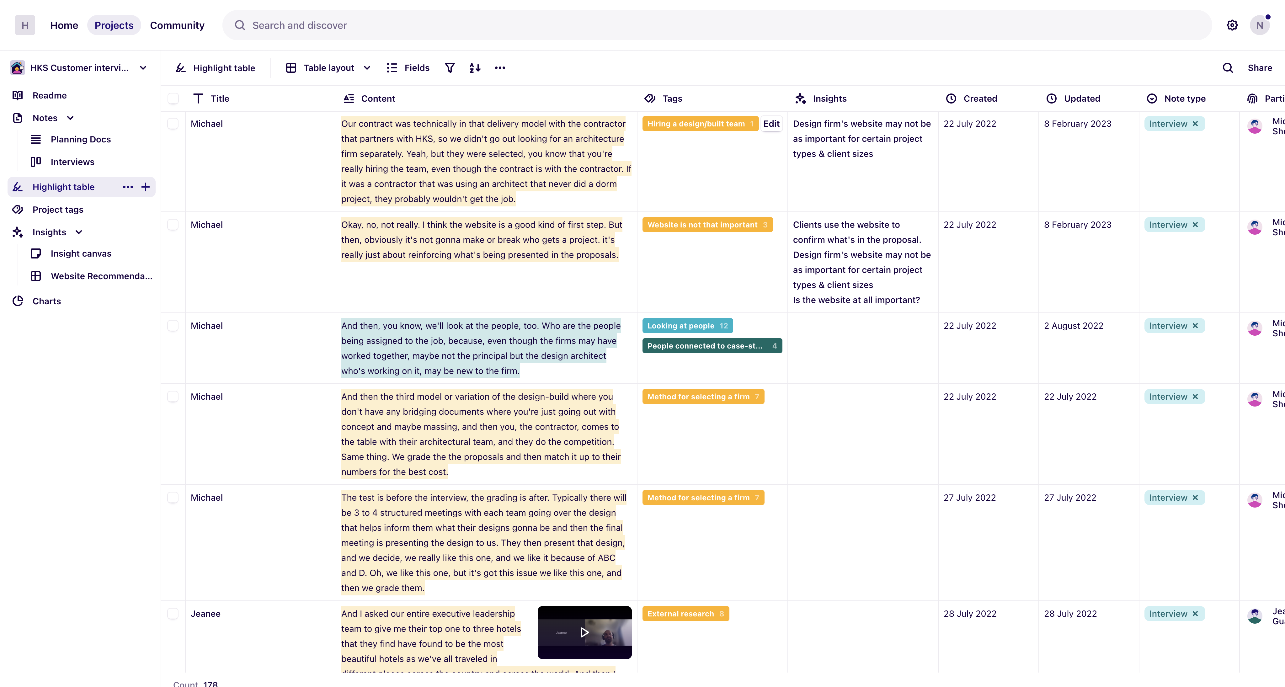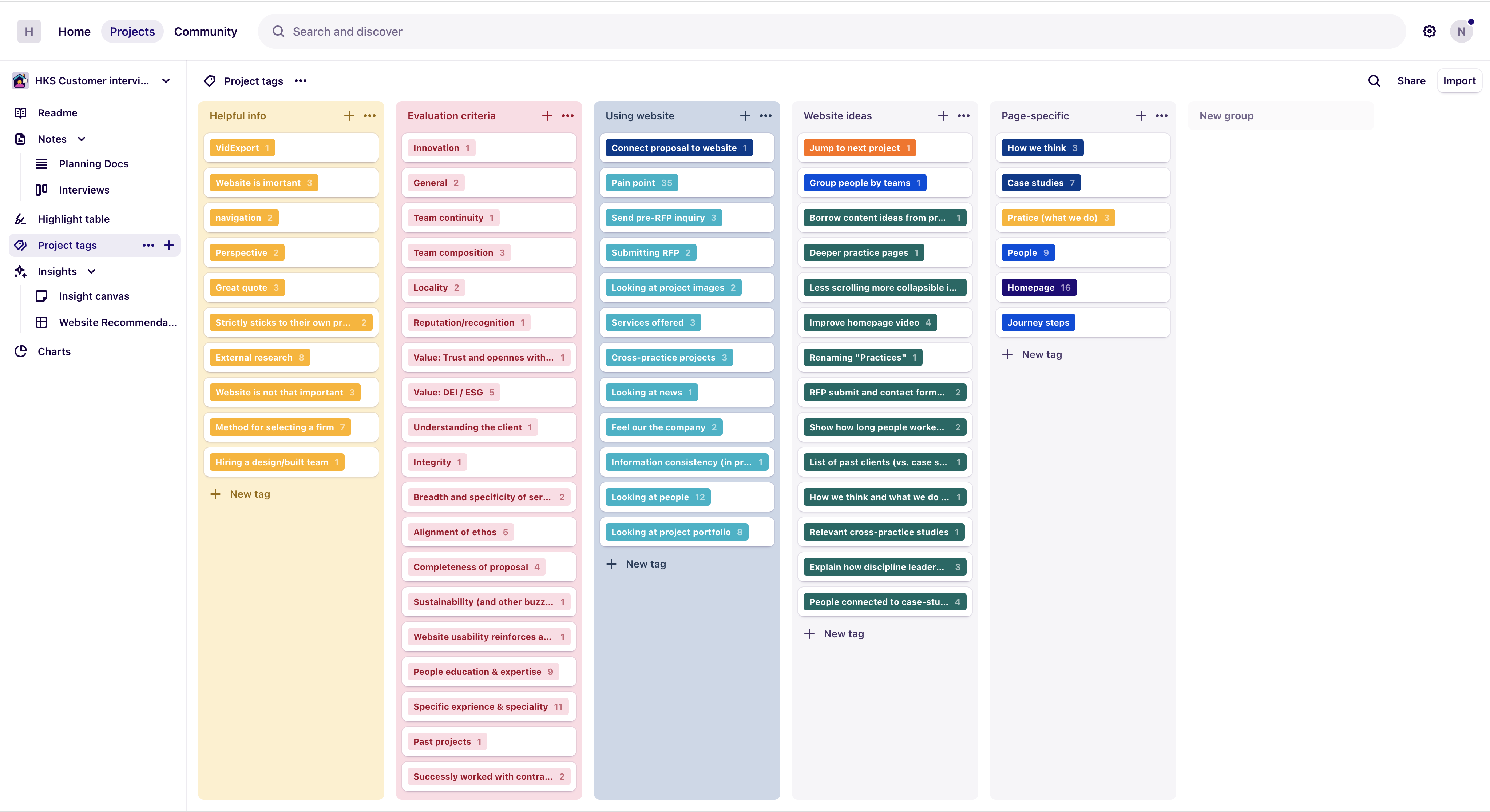 I’ve planed and ran a series of interviews with current and recent clients and used Dovetail for the entire research process: setting up research goals, developing questions, interviewee management, and most impressive set of synthesis and presentation features (e.g., insight canvas and research stories).