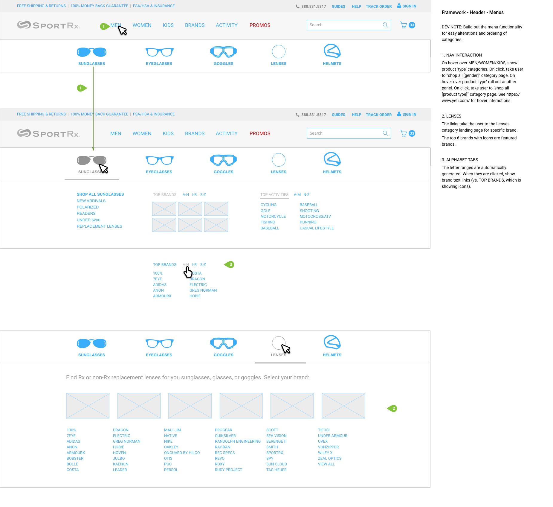 SportRx, a leading distributor of prescription active eyeware, wanted a new website, to stand their ground against fierce competition. Highly customizable lenses were SportRx’s key market differentiator, but also their top pain point. The lens technology, materials, tints, coatings, prescription types, combined with industry vernacular and optometrical nuances, made for a complex shopping process. We’ve set out to streamline lens selection with a kickass lens configurator wizard…. and the rest of modern eCommerce goodness.